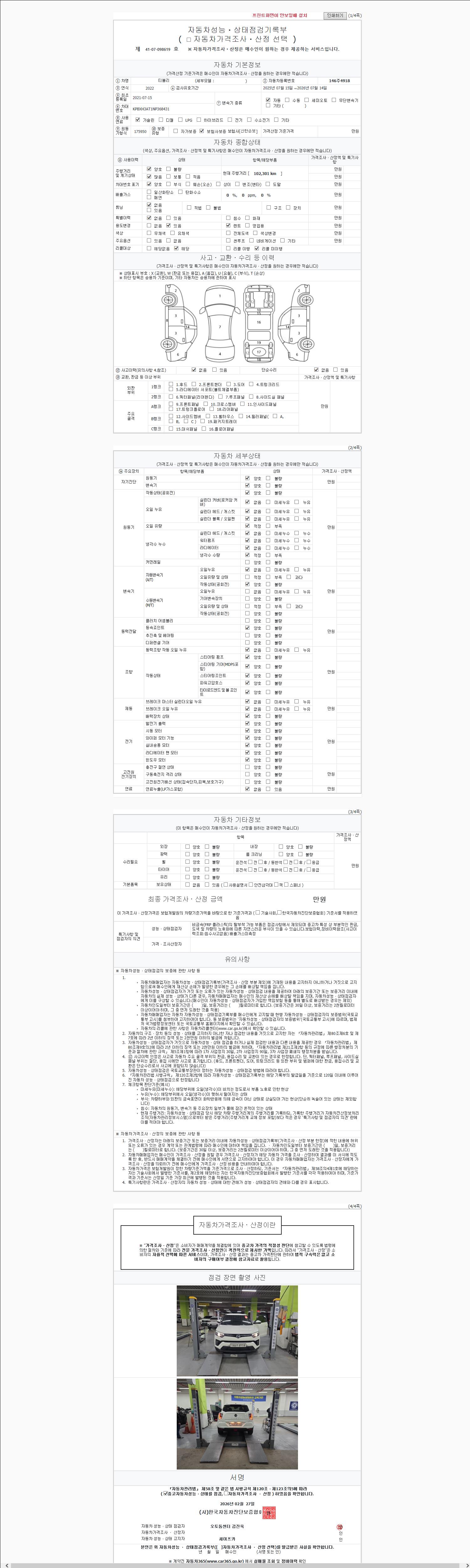 - 2. 차량 등록증이나 성능점검지 등을 상담자에게 요청및 확인하시고 사전에 미리 점검 하시기를 권유드립니다.